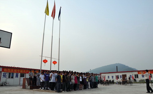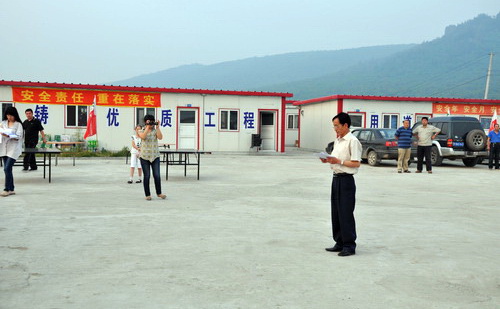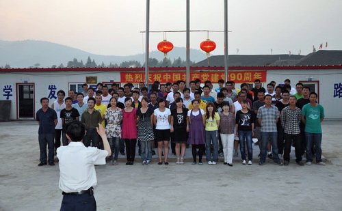 6月29日,中交一公局伊绥高速公路A2、A3合同段项目部鲜红的国旗在空中飘扬,一对大红灯笼悬挂当空,红色条幅上面写着“热烈庆祝中国共产党建党90周年”。项目党支部举行了“唱响红歌 庆贺建党90周年”活动,嘹亮的歌声响彻了工地。