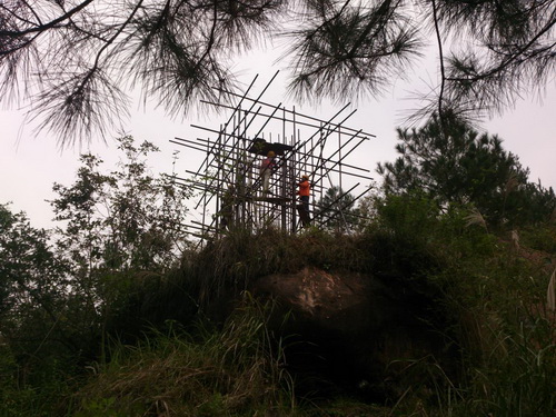 酉沿路挥洒着所有参建者的心血。看那一个小巧精致的悬崖上我们要把桩基培育出来,那可是相当巨大的工程。悬崖上没有捷径,登上山崖只有最原始的方法——步行。工人扛着每一个机器的零部件、扛着一根根钢管、一个个钢筘………先是把整拆成零件,扛到悬崖上在把零件组装成整件,找到可以站住脚跟的地方,开始一步步搭设工作平台。工人们在拥挤的悬崖边搭设工作平台,期间的风景又有谁会注意到呢?
