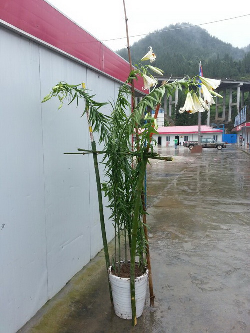 近日阴雨连绵,酉沿高速四分部现场路基施工受到影响,现场技术员李新伟、冯晨蕾在沿路巡视塌方的时候偶然发现几株植物-----野百合。于是,他们就把这些花带回了项目部栽培起来,让夏日里多了几分生机盎然。