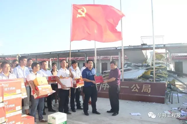 鉴于次日帕卡台风即将登陆,现场人员须在26日下午6点前全部撤离,慰问组又马不停蹄地前往拌合站现场,慰问一线工人,为他们送去即将派上用场的矿泉水、面包、罐头等物资。慰问组一行对奋战在现场的工人们表示由衷的感谢,张国友说道:礼轻情意重,希望这些物资能够解决大家的燃眉之急,在这样恶劣的环境下,请大家一定保重身体,我们作为参建方的人员一定与你们一同奋斗到底,请大家相信我们,相信华祥公司,抗灾过程中涌现出的先进队伍先进人物,我们也会进行表彰奖励,希望大家团结互助,齐心协力完成好灾后重建的系列工作。