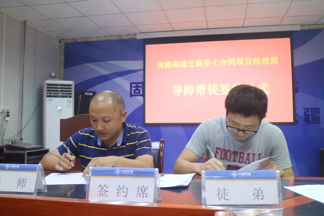 为发挥技术骨干人才的“传、帮、带”作用,贵州剑榕七标开展“导师带徒”活动,项目领导班子、各部门员工见证了项目7对师徒签约仪式。