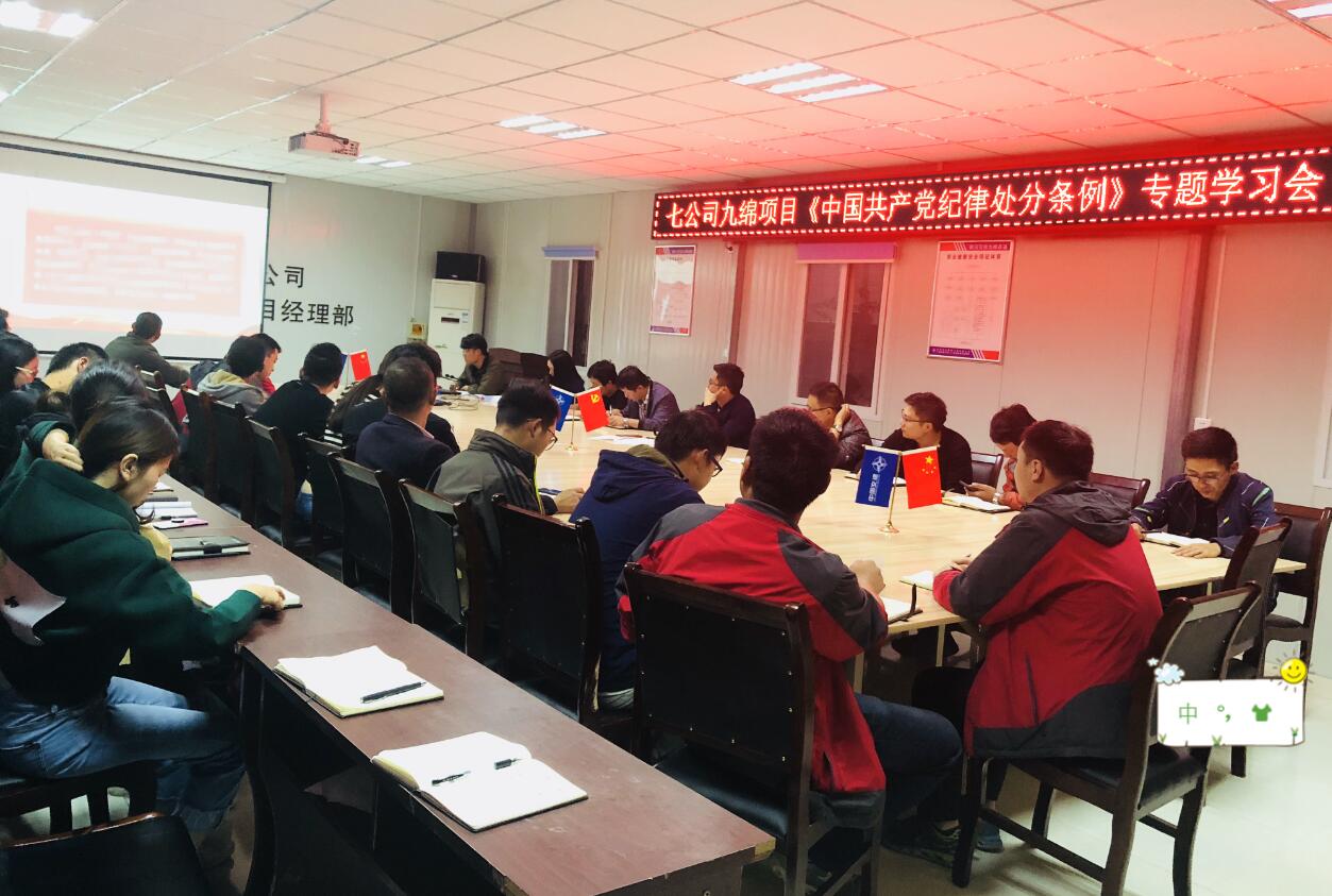 为切实增强广大党员的遵纪守纪意识,筑牢反腐倡廉拒腐防变的思想道德防线,近期,四川九绵高速LJ11标组织学习新修订的《中国共产党纪律处分条例》(以下简称《条例》),全体职工参与。