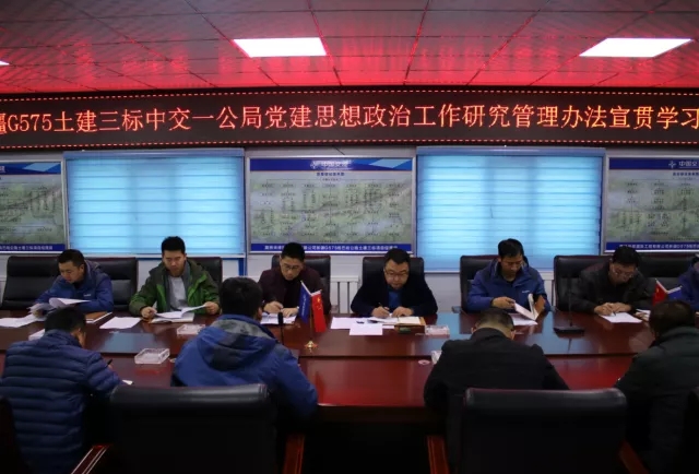 为提高项目党员领导干部的思想教育水平,近日,新疆G575土建三标召开中交一公局党建思想政治工作研究办法宣贯学习会,会议由项目经理主持,项目领导班子成员、全体党员参加了此次会议。