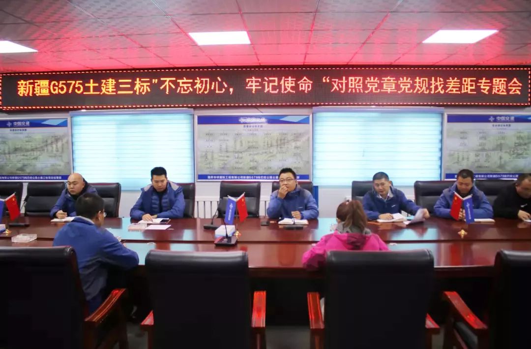 11月1日,新疆G575土建三标开展“不忘初心、牢记使命”对照党章党规找差距专题会,项目领导班子成员、全体党员、积极分子参加会议。