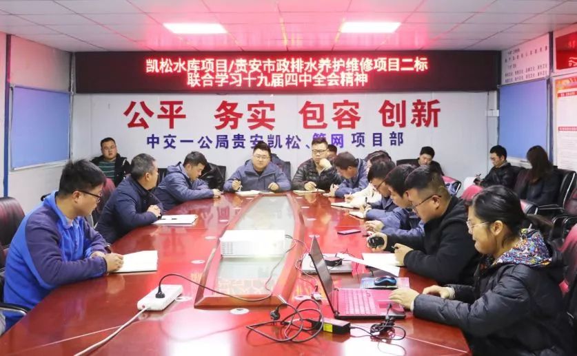 11月20日,贵州凯松水库项目、贵安市政排水养护二标联合学习党的十九届四中全会重要指示精神,与会人员围绕学习内容,结合自己岗位职责和工作实际,做学习交流和心得分享。项目负责人强调,学习全会精神是当前一项重要的政治任务,项目员工要认真领悟,掀起学习热潮。同时,结合公司各工作会议指示,以“334”工程建设要求为抓手,立足工作岗位,在做好做实上创新工作方法,努力提高自身能力,为企业发展建设贡献力量。(李渊)