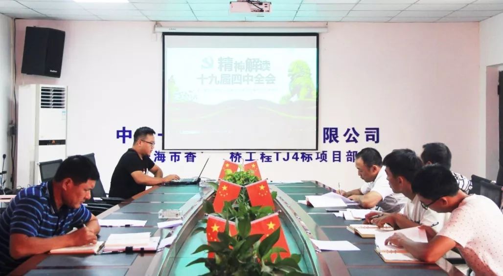 11月18日,珠海香海大桥项目TJ4标党支部组织全体党员认真学习十九届四中全会精神,通过学习与会人员一致表示,要把智慧和力量凝聚到本职工作上来,铆足干劲、真抓实干,在思想上与党中央保持高度一致,朝着“走在前列、全面开创”的目标坚定前行。(李焱)