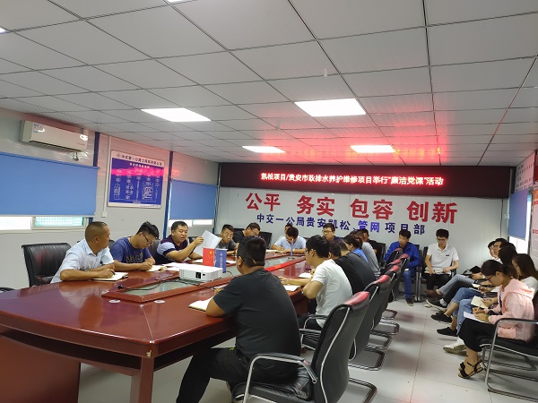 8月25日,凯松项目、贵安市政排水养护维修项目联合举行“廉洁党课”活动,项目负责人李远征主持,项目全体员工与协作队伍负责人等参加。