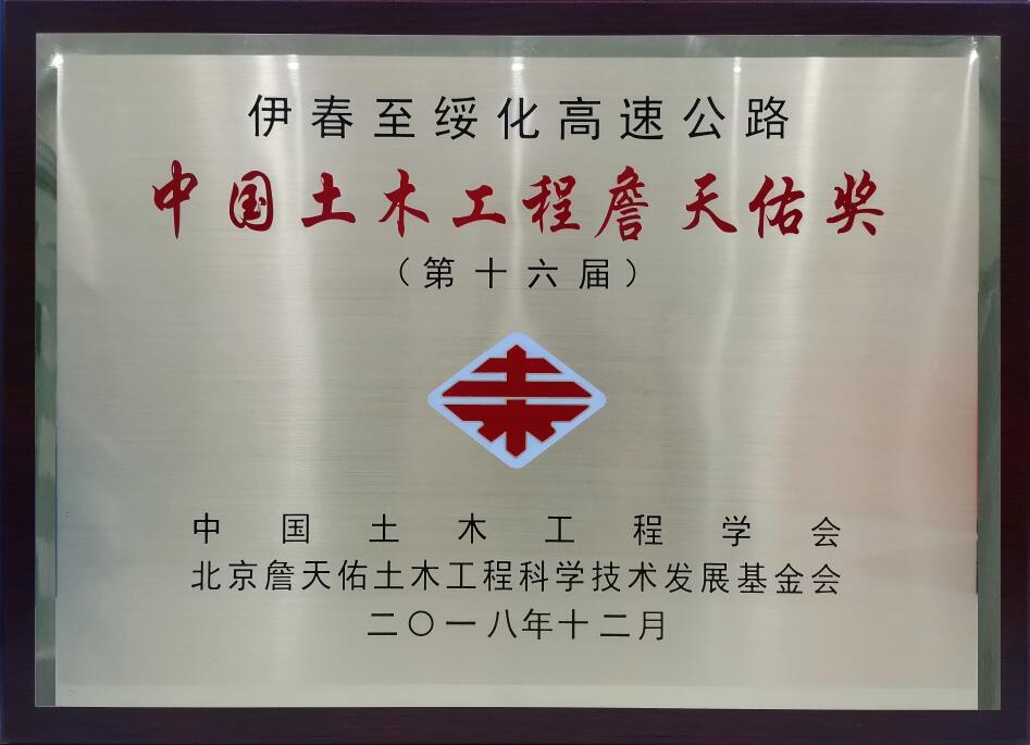 公司荣获中国土木工程詹天佑大奖(第十六届)