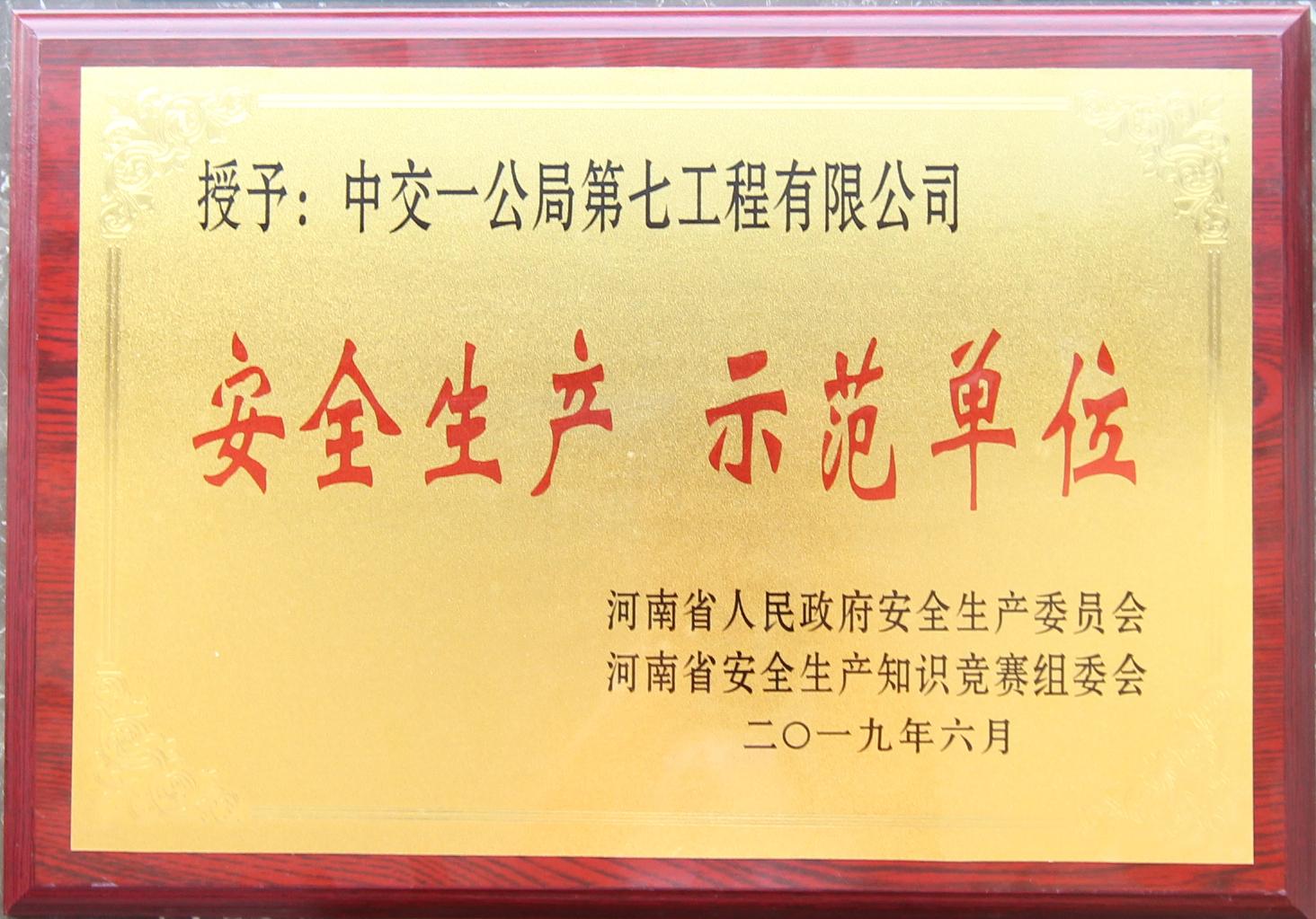 公司荣获2019年河南省“安全生产、示范单位”荣誉称号