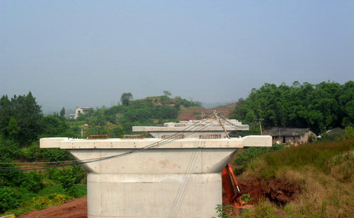花滩河特大桥全长772.04米,位于重庆市合川区三庙镇辖区内,地处低洼地带,施工难度很大。项目部组织专题攻坚小组,针对该桥地理特点排出施工计划,24小时施工,抓质量、促生产、保进度,克服重重困难,最终顺利完成施工。(常魁星 高鹏举)