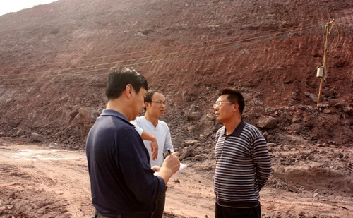 在项目书记王恩顺的陪同下视察骆驼梁子隧道进展