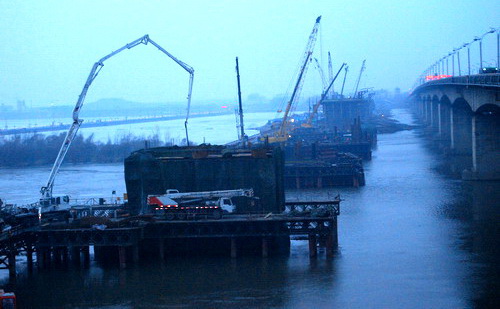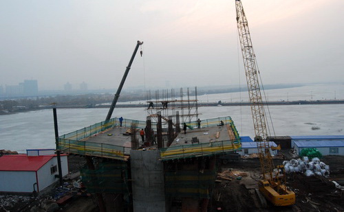 黑龙江省哈尔滨松花江大桥扩建工程是哈尔滨实施“北越”战略的重点工程,工期非常紧。承建该工程的中交一公局哈尔滨松花江大桥扩建工程项目经理部克服重重困难,展开冬季施工,加强防火安全工作,确保施工安全。