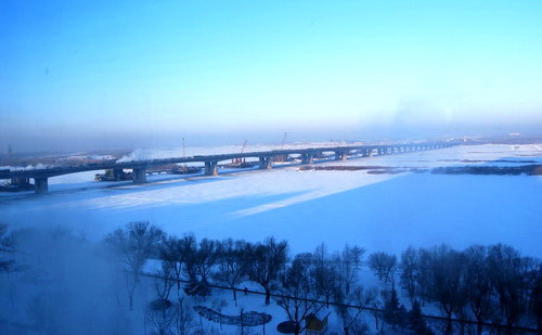 12月13日,哈尔滨风雪交加,气温降到零下29度,松花江上寒风凛冽,滴水成冰。为早日建成松花江大桥,实施“北跃”战略,中交一公局哈尔滨松花江大桥项目职工顶风冒雪,坚持冬季施工,奋战在松花江上,忘我拼搏,创造着“松花江大桥建设速度”。项目部采取超常规施工方法,坚持冬季施工,桩基施工、墩柱、T梁预制同时施工,桥梁下部施工与上部施工同步展开,施工进度突飞猛进,形象进度日新月异。
