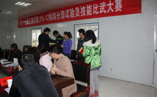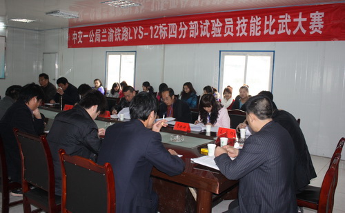2010年12月9日,兰渝铁路12标第四分部工会组织开展了试验员岗位操作技能比武活动。比赛邀请兰渝12标局指领导作为嘉宾,北京方达监理公司的三位监理来担任现场评委。比赛共设有三个项目:1)水泥标准稠度用水量;2)标定量砂的单位质量;3)钢筋室温拉伸。经过紧张激烈的比赛,按现场三项操作总分评选出试验技能比武项目总成绩的前三名。比武活动结果出来以后,由局指领导和总监理为获奖选手颁发了荣誉证书和奖金,最后由项目书记王恩顺进行总结性发言。