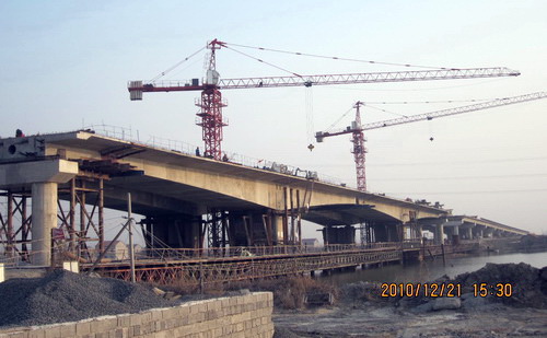 善后河大桥主桥由于技术难度大、施工耗时长是全桥施工的重中之重。路桥华祥国际工程有限公司连云港242省道建设工程项目经理国斌带领项目全体员工集思广益、克服严寒等不利因素影响,采取多种方法对主桥悬浇块混凝土保温养护,缩短主桥悬浇块的张拉周期,加快施工速度。截止到12月23日,江苏省连云港242省道善后河大桥累计完成桩基140根,立柱96根,盖梁44个,承台8个,薄壁墩4个,箱梁预制196片,安装180片,主桥悬浇块76块。累计完成产值5790万元,完成总产值的95.3%,为2011年1月10日善后河大桥左幅通车奠定了基础。(常魁星/霍宇杰)