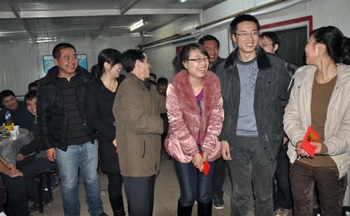 双燕复双燕,双飞令人羡。昨天晚上,由中交一公局伊绥高速项目经理部组织,在书记陈建华的主持下,对在这次冬休期间结婚的六对新人举行集体婚庆,代表项目排设婚庆酒席,祝福这六对新人花好月圆,新婚愉快! 感谢他们放弃蜜月的时间积极的投入到伊绥高速建设的队伍中来,对他(她)们的行为表示感谢!
