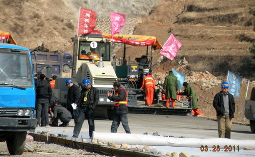 3月28日,路桥华祥国际工程有限公司承建的山西省高陵高速公路LM3合同段路面工程项目部水稳底基层试验段铺筑完成。1#水稳拌合站已投入使用,2#水稳拌合站和4000型沥青拌合站设备正抓紧安装、调试,已预定沥青8000吨、水泥10000吨,生产并进场碎石约15余万方,为路面施工奠定了基础,具备了大面积施工条件。