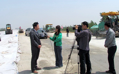 路桥华祥国际工程有限公司郑民高速公路郑州段LM-1标项目经理部积极大干精神受到了媒体关注,5月3日上午,郑州电视一台对路桥华祥公司郑民路面1标项目部进行了采访,项目副经理张鹏向记者介绍了项目概况及施工计划。