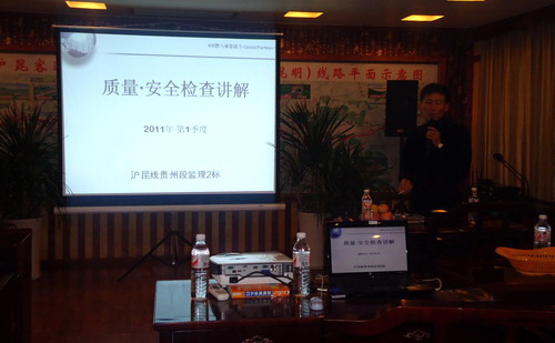 4月15日,中交一公局沪昆客专贵州段四标三工区请监理2标韩方监理组组长林容文对项目部技术人员进行了质量安全方面的培训。项目部全体技术员,测量员与实验人员参加了培训。