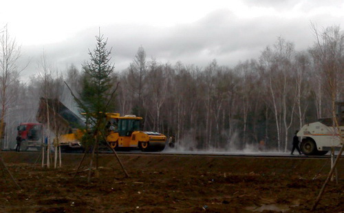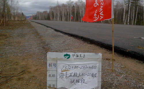 由于东北地区寒冷,为保证工程质量中交一公局伊绥高速公路A2、A3标项目部多次与业主及技术服务单位联系协调,于5月6日完成了沥青混凝土下面层试验段摊铺。在摊铺过程中,突降中雨,项目部及时启动应急方案,项目经理亲临现场指挥碾压,历时一个半小时施工,完成二百米试验段施工,在第二天的技术指标检测中,各项指标全部达到或超过沥青施工技术规范要求,试验段一次施工成功,在全线九个标段中,第一个完成试验段摊铺,得到了监理、技术服务单位及业主的一致肯定。继而,项目展开了大面积路面施工,为了加快施工速度,路面摊铺施工昼夜24小时连续进行,一条优质的高速公路正在森林中延伸。(常魁星)