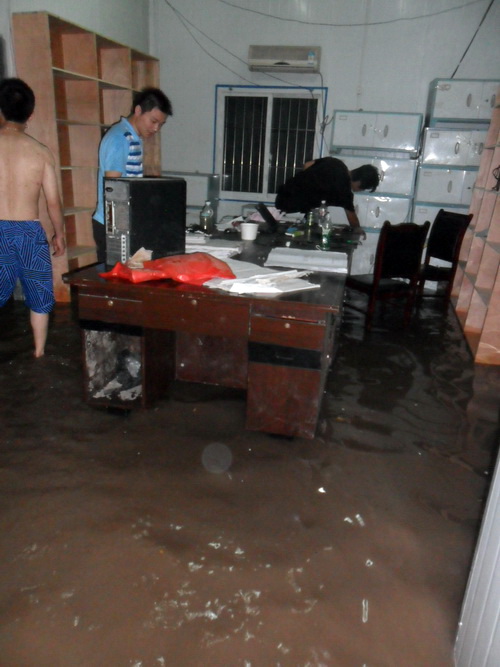 6月21日晚10点,重庆市合川区遭遇强对流天气的突然袭击,大雨骤降,大风雷电交加。位于合川区七间镇的中交一公局兰渝兰渝铁路12标四分部项目部遭遇洪灾袭击,由于项目部仓库、资料室与会议室地处低洼地带,上方公路坡度较大,背后还有农田,房屋又是活动板房组建的,暴雨到来时,雨水和泥沙汇集冲进屋内。灾情发生后,项目领导迅速组织职工抢险救灾,转移物品。小伙子们顾不上穿戴雨具,有的索性赤膊上阵,冒着倾盆大雨与项目领导一起搬运物品与资料。项目部的共产党员充分发挥先锋模范作用,带动大家发扬“不怕苦,不怕累”的精神,仅用短短四十分钟,即将资料室的全部资料以及受灾物品全部转移到安全地带。(常魁星 李婷婷)