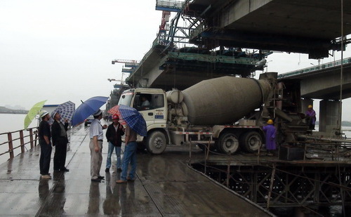 6月22日,中交一公局总工程师刘元泉带队,局聘专家刘树良参加的质量检查组对哈尔滨松花江公路大桥扩建工程进行了质量大检查。