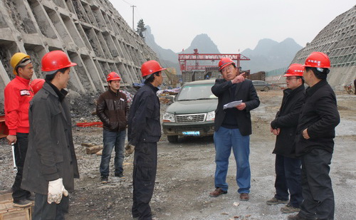 项目副经理张万清(右三)对工作人员做最后的安全技术交底