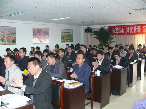 华祥公司总经理姚广成作了题为《坚定信心,细化管理,实现稳步持续发展》的工作报告,客观全面地总结了2011年公司所取得的成绩,也实事求是地指出了存在的问题。对2012年的工作计划和工作目标,提出了任务和要求,明确了公司坚定信心,完善自我,群策群力,迎头赶上,全面推进公司良性可持续发展的目标。报告鼓舞人心,催人奋进。公司的发展战略:一年调整,两年跨越,三年发展成局内主流公司;经营战略:凸显主业,发展多元;2012年生产经营指导思想:以科学发展观为指导,解放思想,开拓思路,以市场开发、结构升级实现企业科学发展,以整章建制、强化执行力实现企业健康发展,以管理创新、技术进步实现企业创新发展,为把公司建设成实力型企业而不懈努力;2012年度工作方针:积极应对市场变化,狠抓规章制度落实,加强品牌诚信建设,全面提升管理水平;2012年工作重心:一个中心两个重点。即,以市场开发为中心,以项目基础规范管理和集中结算为重点;公司的管理目标:以人为本谋发展,开发市场为核心,强化管理上水平,持续改进增实力;项目的管理目标:业主满意工程进度、监理满意工程质量、企业满意经济效益、职工满意劳动收入。报告部署了2012年十项重点工作,即,一、理清发展思路,明确发展方向,确立奋斗目标;二、以市场开发为龙头, 确保开发额目标值超额完成,建立核心市场;三、调整公司管理机构,加大制度执行力;四、培养选拔专业人才,增强企业发展后劲;五、深化监察审计,促进项目健康平稳发展;六、以经营管理为重点,规范细化项目管理;七、引进优秀协作队伍,增强企业竞争实力;八、采取有力措施,扭转亏损项目;九、培育优秀企业文化,建设样板品牌项目;十、加强党建思想政治工作,构建和谐企业环境。