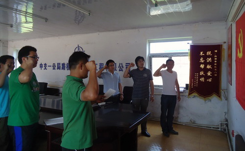 7月1日,路桥华祥国际工程有限公司辽宁抚通高速公路八标项目党支部组织全体党员和入党积极分子开展了重温入党誓词活动,热烈庆祝中国共产党成立91周年。全体党员严肃而庄重的举起右拳头:“我志愿加入中国共产党,拥护党的纲领……对党忠诚,积极工作,为共产党事业奋斗终身……”高昂的入党宣誓声在项目激荡。