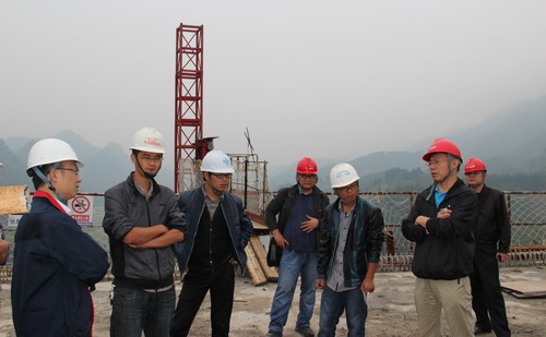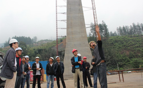 中方监理副总监刘云向技术员讲解桥梁施工工艺