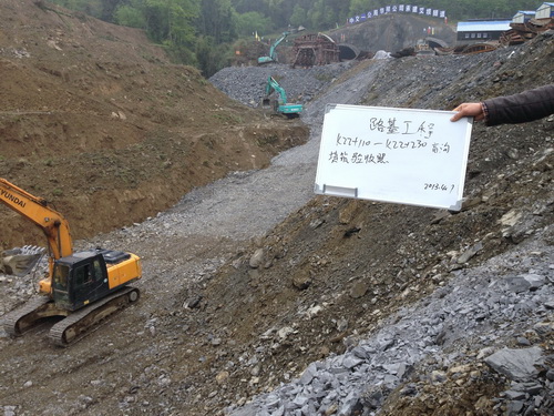 进行施工的路基土石方作业面毗邻艾坝隧道进口端,长度约480米,为半填半挖,挖方偏的施工。目前,清表工作已完成,边坡开挖施工正在进行。路基工区全体施工人员干劲十足,表示将贯彻安全是保证,质量是根本的施工方针,科学组织,精心施工,不畏艰难,勇于实践,合理调配施工机械,争取在最短的时间内完成边坡的开挖,尽早进入路基实体施工,创造沿德高速公路三标施工“新速度”,把沿德高速建设成为优质、安全、环保、高效的精品工程,造福贵州人民。