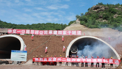 7月8日晚22点35分,随着一声炮响,由公司承建的建兴高速公路四家子隧道左线胜利贯通。