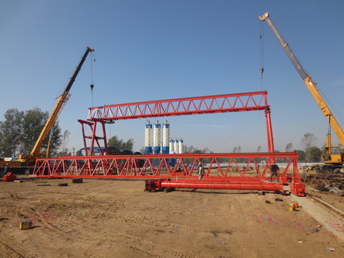 2013年11月4日初生的太阳刚刚升起,在一片噼噼啪啪的鞭炮声中,开民高速二分部项目部预制场内两台吊车高高架起龙门吊准备安装。 鞭炮声、礼花声震的大家纷纷跑到预制场内观看。河南开民高速二分部项目部根据河南省要求从项目部驻地建设、预制场、拌合站及料仓都要按照河南省标准化要求施工建设,目前开民高速二分部混凝土预制场内两台90拌合站已经安装调试完毕.龙门吊的安装今天正式开始,为预制梁的工作做好充分的准备。河南开民高速是河南省一条重要的联络通道,本项目为开封至民权段,该项目的建成将形成河南省一条重要经济、旅游线,对河南省中原城市群的建设发挥巨大作用。(刘月丽)