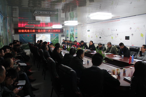 近日,贵州沿德高速公路一监办第一次工地例会在路桥华祥国际工程有限公司沿德三标项目部会议室成功召开。工地例会由一监办高级驻地监理工程师刘四成主持,业主单位沿德公司总工程师吴云、沿河项目办负责人麻新泉等,监理单位总监理工程师桂勇等以及中心试验室、土建施工单位一至六标项目经理、总工等参加会议。