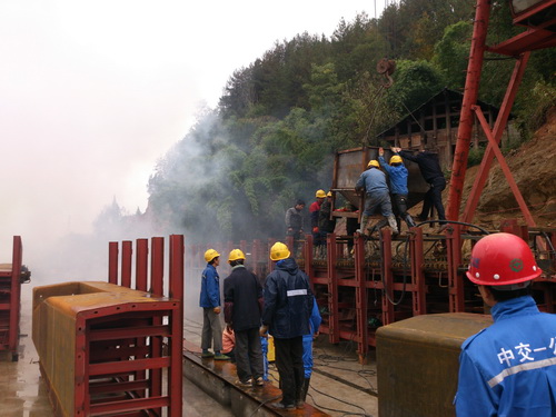 本着打造精品、打造亮点的目标,1号梁场作为项目部重点打造的亮点工程,项目部精心规划、超前谋划,多举并措,按照重庆市标准化的要求进行梁场的建设和T梁的预制工作。为确保预制梁任务圆满完成,项目部领导高度重视、统筹规划,在面临地处山区、场地狭窄,无平整场地的情况下,果断决策将梁场建在桥头路基上,梁场占地面积6667平方米,设置20米台座8个,40米台座8个,计划预制T梁300片(含替三分部预制30米T梁85片)。在梁场建设中加大了人力、机械设备等生产要素的投入,克服了更换路基施工队伍带来的场地延误,经历了数次较为严重的地方阻工,清退了进场迟缓的队伍并引进了新的较为正规的T梁施工队伍,以最快的速度高标准的完成了梁场标准化建设,为后续梁的施工提供了坚强保障。为保证预制梁的施工质量及安全,在龙门吊使用之前,项目及时与酉沿质监局联系,对龙门吊特种设备进行检测,完善了特种设备的报备工作,并积极选派人员参加总承包部举办的特种作业培训班,确保特种作业人员持证上岗。在T梁预制之前对现场所有的施工人员进行了详细的技术交底、安全技术交底及危险源告知,确保了第一片梁的成功浇筑。 (吉恒敏)