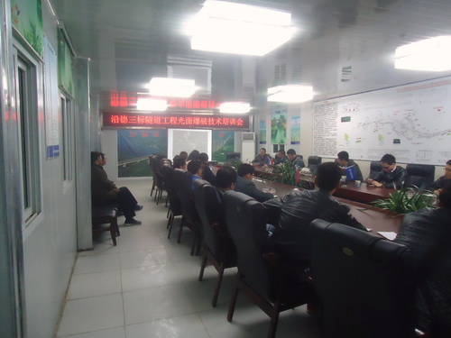 3月10日,贵州沿德高速公路三标项目部邀请业主工程质检部隧道工程师进行隧道光面爆破施工技术培训。项目工程部、安质部、测量队技术人员、艾坝隧道进出口两工区开挖班组人员及部分炮工参加了培训。