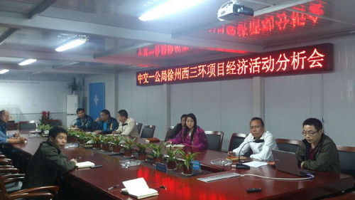 4月15日晚,中交一公局徐州市三环西路高架快速路XS-LQ4标项目经理部召开了项目部成立以来的首次项目经济活动分析会。会议由项目总经济师杨旭主持,项目经理崔达、总工张晓宇、副经理霍一波及各部门、各工区负责人参加了会议。