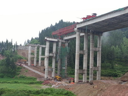 2014年7月4日,酉沿高速四分部龙潭子大桥13#左幅垫石浇筑完成,标志着龙潭子大桥基础及下部构造全部完工,全面进入上部构造施工。