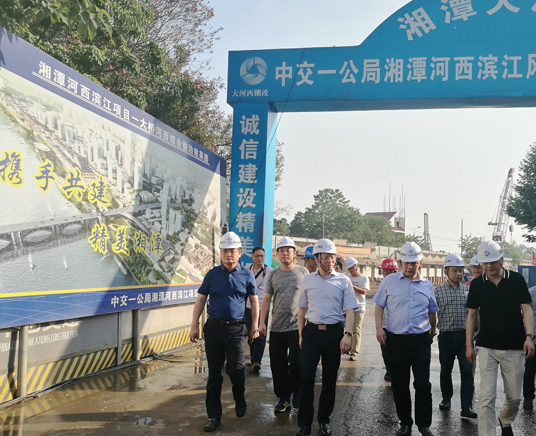 近日,湘潭市委副书记、市长谈文胜带领市精美办负责人和市住建局局长陈荣,对公司投资建设的湘潭河西湘江风光带大埠桥至望衡亭及一大桥整治项目进行了视察督查。