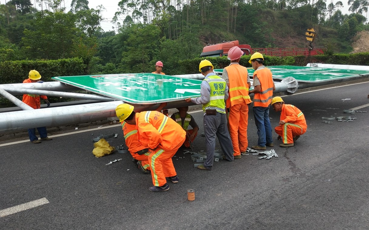 5月31日,重庆九永机电交安项目顺利完成已通车路段成渝高速高接高标志立柱版面安装工作。