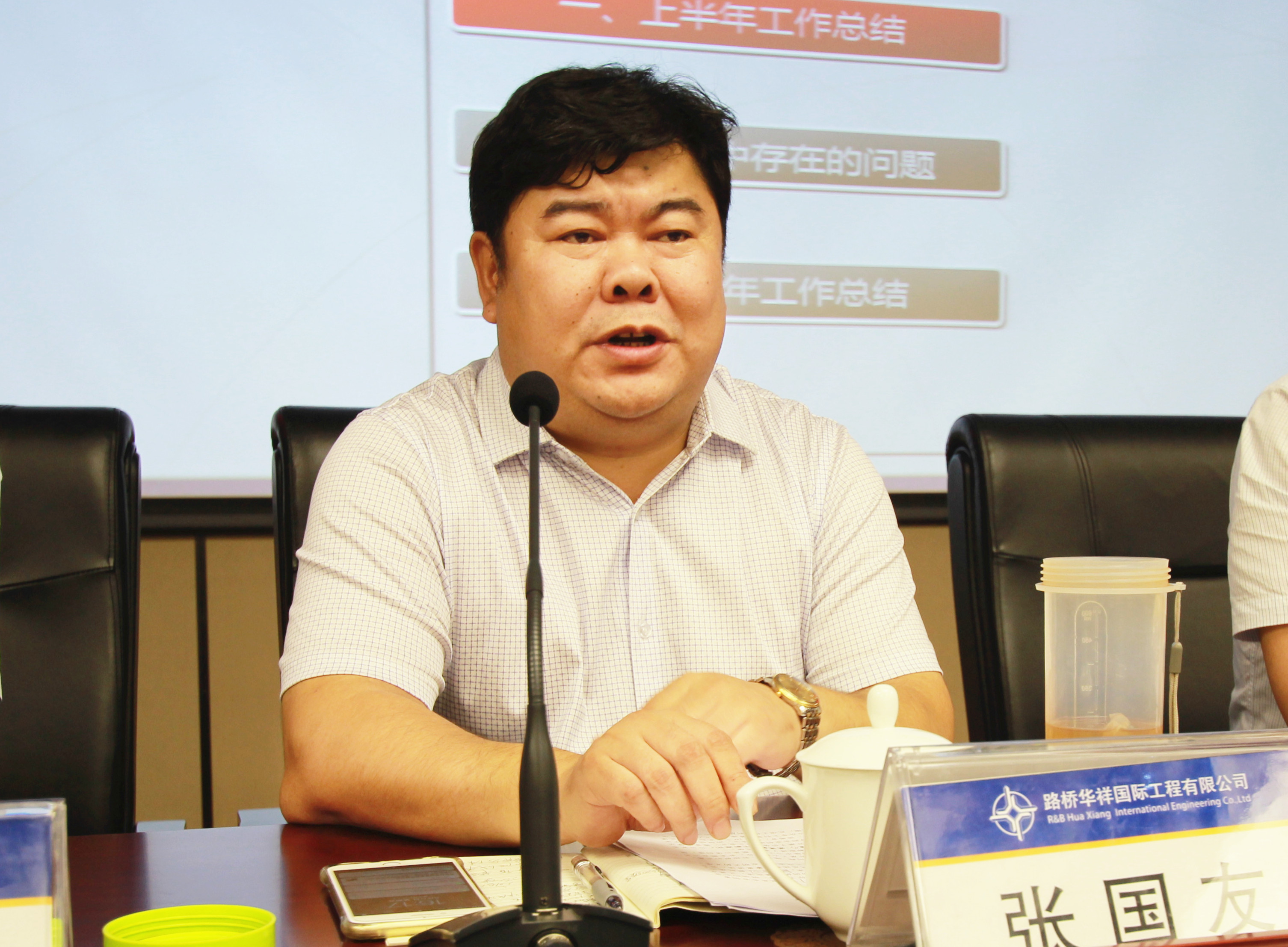 会上,公司各分管领导分别就分管内容进行了总结发言,并安排部署下半年的重点工作。湘潭项目、官渡一分部二工区、G218土阿1标、平罗二标、九永机电交安绿化项目分别结合项目特点交流经营、安全、质量管理等多方面的工作。公司财务管理科以“从价值创造到创造价值”为出发点,交流财务管理工作。酉沿交安项目经理针对2016年信用评价得分较低情况做了诚恳的检讨和深刻的反思。反思结束后姚广成、崔达再次强调信用评级工作的重要性,要求公司领导及各科室要把信用评价工作作为下半年重要工作来抓,完成既定目标。会上,通报了公司2017年年中检查情况,整理在建项目亮点工作87个,整改项122个,建议项600多条,并对检查中存在的共性问题进行深入剖析。