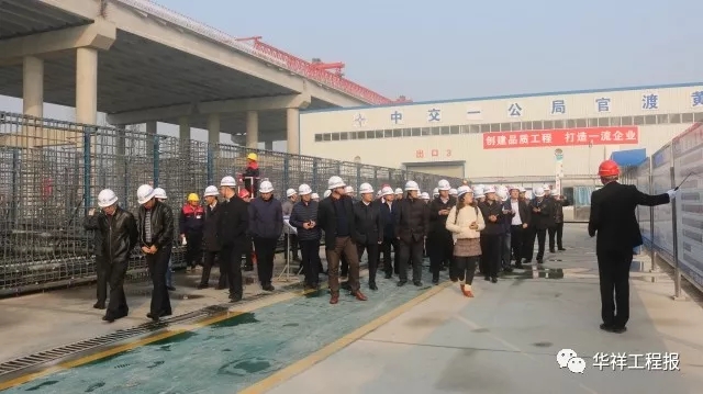 12月2日,一公局总工程师李英俊带队局属分公司重要领导,各投资项目经理及在建项目经理、总工程师组成的约130人观摩团,莅临官渡黄河大桥一分部参观交流,公司执行董事、党委书记张国友陪同观摩。