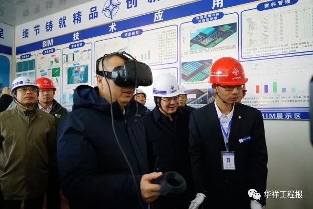 与会领导首先体验了VR厂区漫游,随后参观了钢筋100%数控加工和T梁预制厂。对钢筋厂“机械化换人、自动化减人”信息化管理给予了高度认可。对T梁厂“临时电力设施、骨架限位器、升降式自动穿束梳束机、‘1+6’智能养生系统及‘8372’班组标准化管理”详细进行了解并连连称赞,并对常规项目微创新式精细化管理成果给予肯定,提倡集团下属各级单位学习借鉴,共同提高。