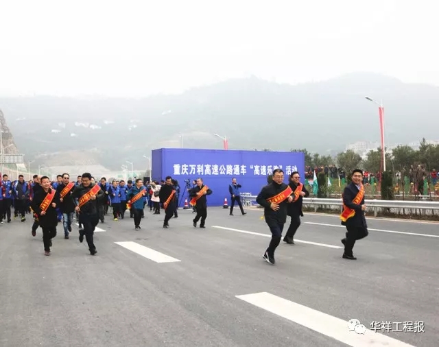 12月26日上午11点,万利高速公路顺利通车,高速公路建设者们汇聚在驸马长江大桥举办“高速乐跑”活动。一公局副总经理庞维新,重庆市高速集团副总经理孙立东,重庆市交委副巡视员杨荣光,项目公司董事长杜小平,万州区副区长赵光平参加了本次活动。公司副总经理张家旭应邀参加了此次通车仪式。