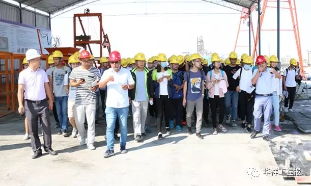 参观团一行在项目常务副经理卿章良的带领下,依次参观了钢筋加工场、预制场、小构场、拌合站等施工现场。项目人员向同学们详细讲解了项目基本建设情况、施工工艺流程及四新技术的应用,并宣传了“公平、包容、务实、创新”的企业核心价值观,勉励参观团一行在学校扎实学好专业知识,为今后参加工作奠定扎实基础。