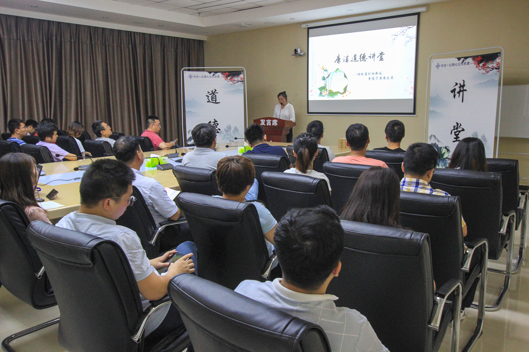 为传承发扬中华民族优秀的传统文化,进一步提高公司全体员工的廉洁从业意识,7月26日,公司党委工作部和纪检监察部联合举办了2018年第一期廉洁道德讲堂活动,机关全体员工现场参加,各项目通过视频形式全程参与。