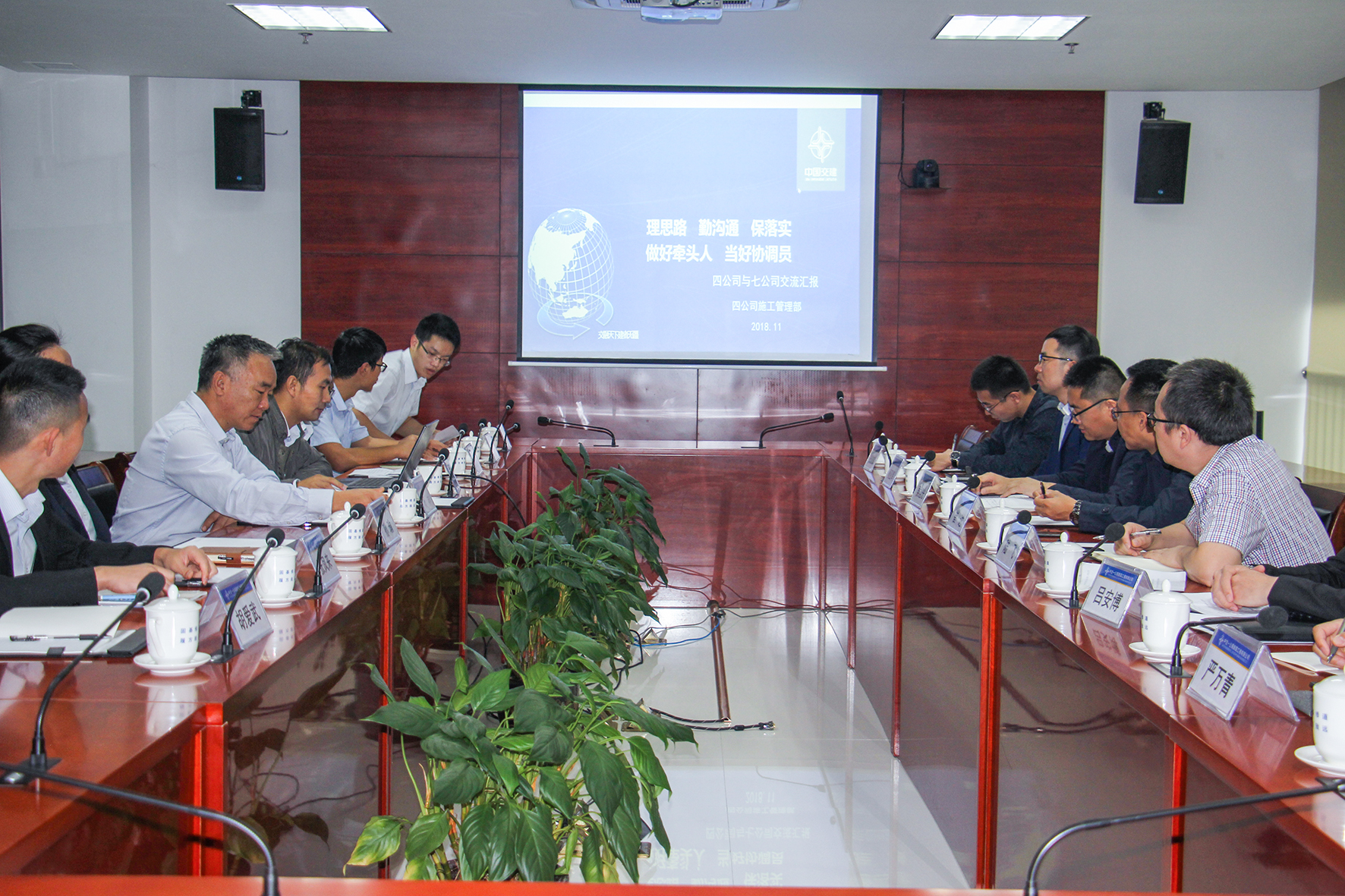 在交流过程中,四公司施工管理部首先做了《理思路、勤沟通、保落实、做好牵头人、当好协调员》主题汇报,之后双方分别介绍了各自公司的发展历程及现状,并就计划统计、前期策划、施组管理、市场信用评价、协作单位管理、隧道管理等施工管理部各方面工作内容进行了深入的对口交流。在此期间,公司一行还参观了四公司行政大楼、监控大厅、职工书屋、体育馆等,并合影留念。