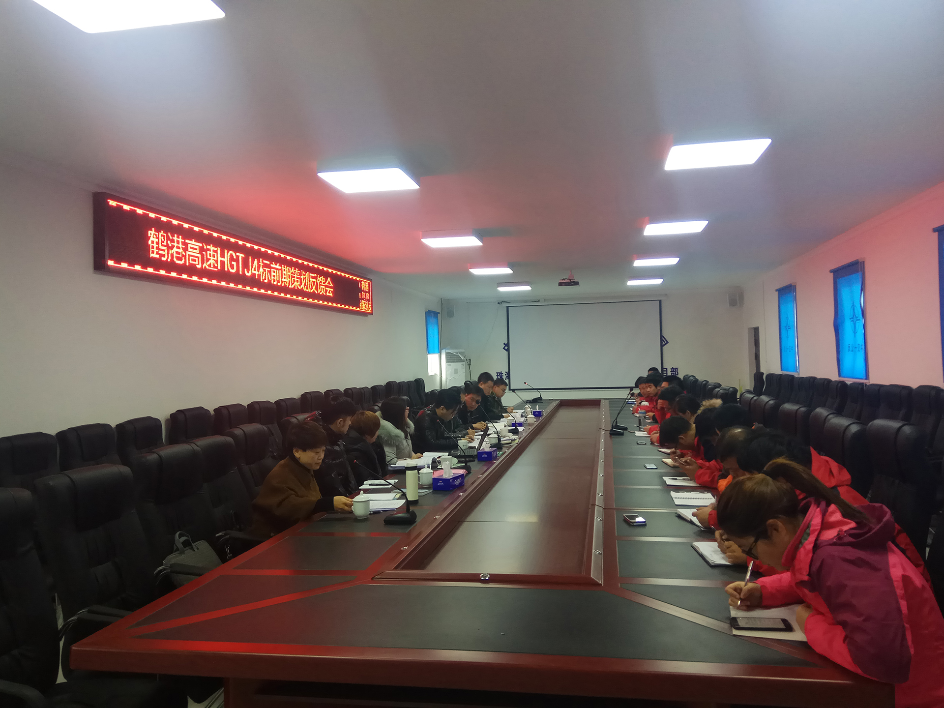 9日上午,策划组到鹤港高速项目即在会议室召开前期策划启动会,首先听取了项目总体概况及工作开展情况,然后公司各科室对项目对应部门进行检查策划,发现问题、提出问题,并给与整改意见和建议。下午,策划组所有成员到项目标段红线范围内进行现场查看,了解场站用地、设计等情况。