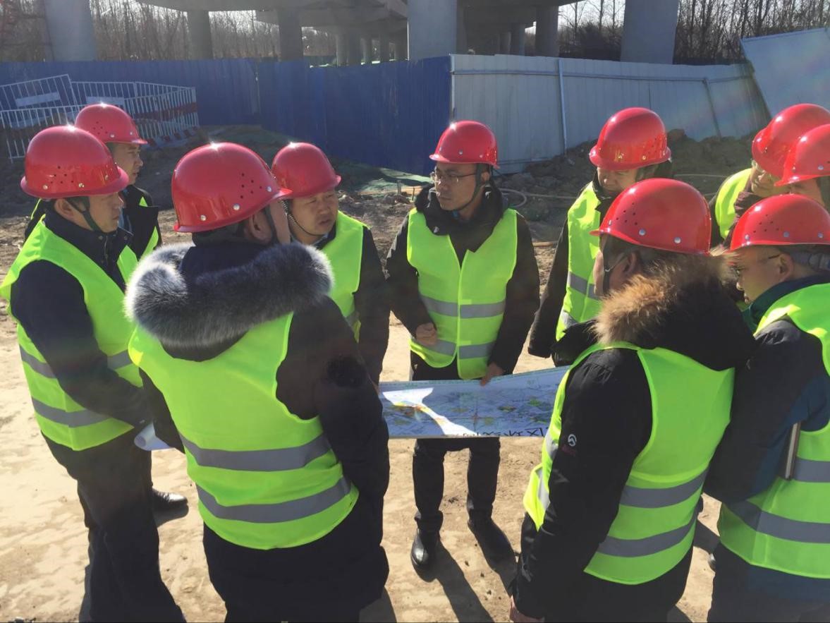 1月25日,公司副总经理崔达、张家旭,总工程师赵振平带队公司前期策划组到首都环线高速公路第七分部交安、机电、绿化项目部指导工作。
