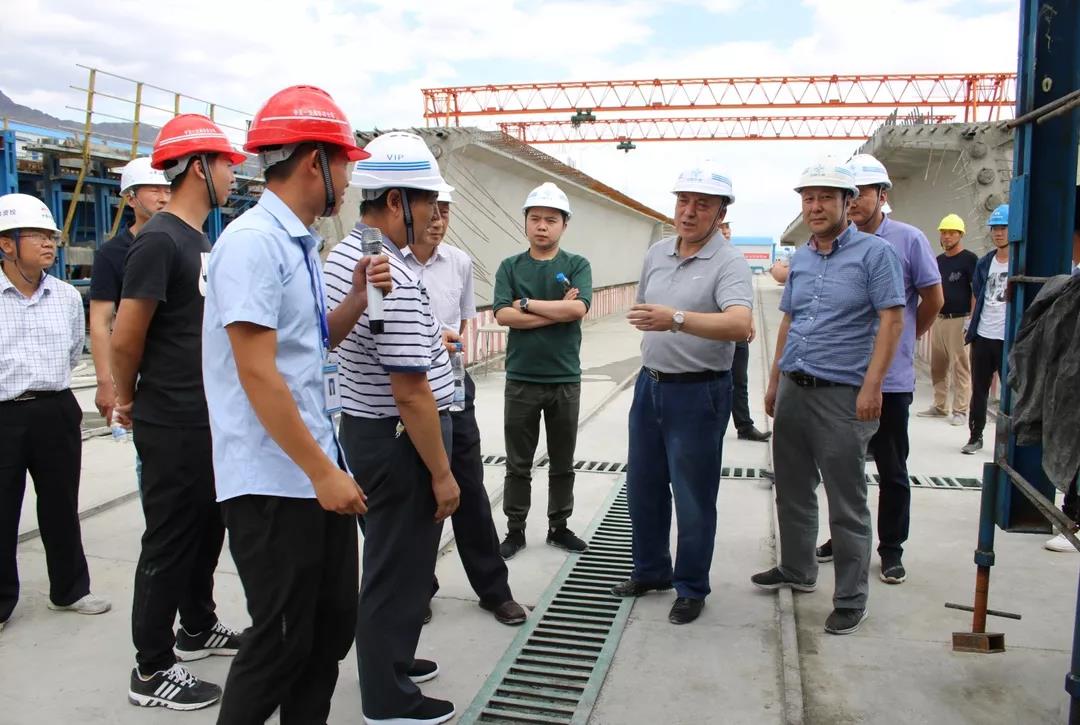 检查组一行到项目预制梁场及钢筋加工场,听取了讲解员对梁场简介和规划、项目管理、箱梁生产工艺、机械设备介绍、钢筋加工的详细介绍,对场站标准化建设、先进的机械设备及施工工艺给予了充分的肯定,并表达了交通厅对项目在施工工程和品质上的期许,希望在后续施工中,再接再厉,再创佳绩。